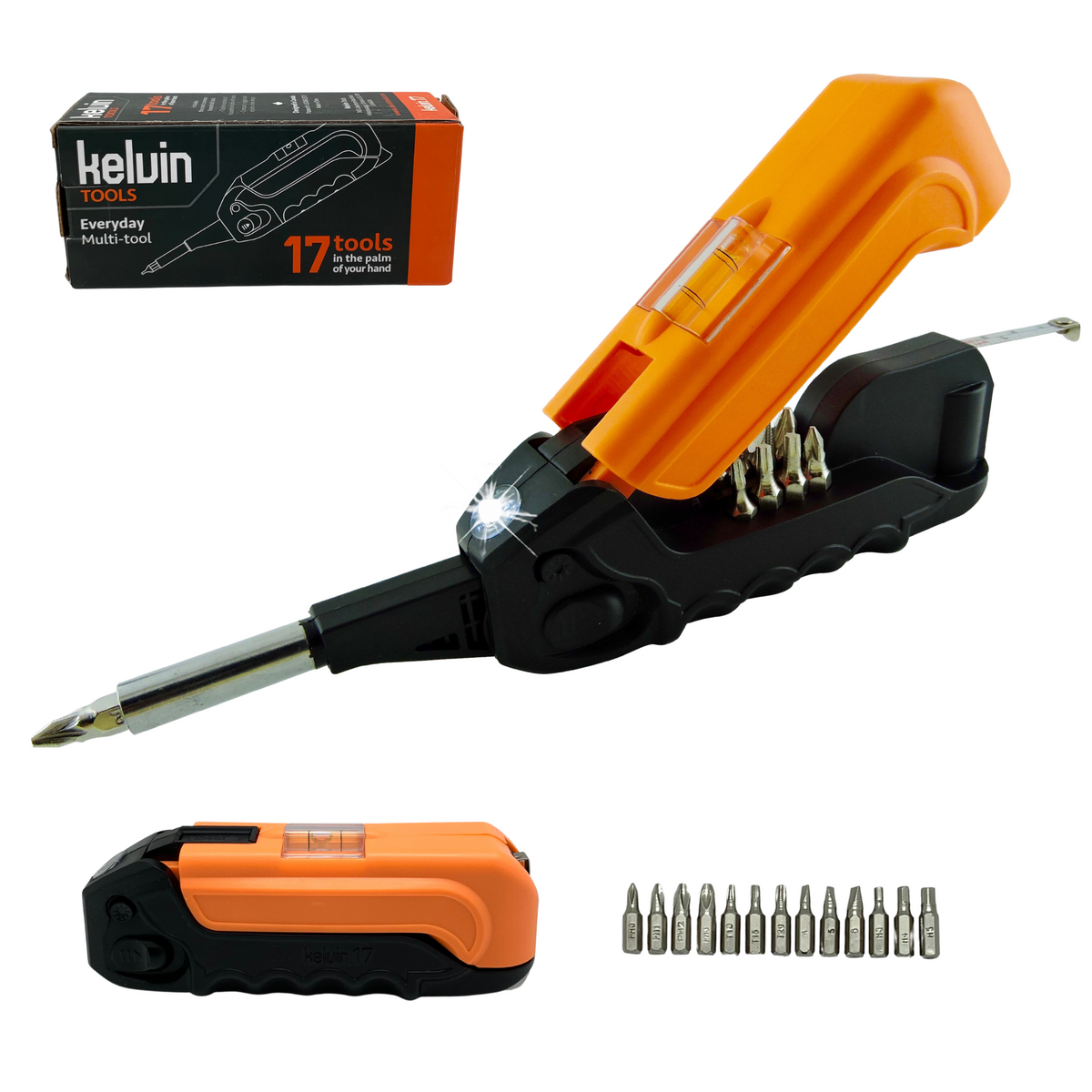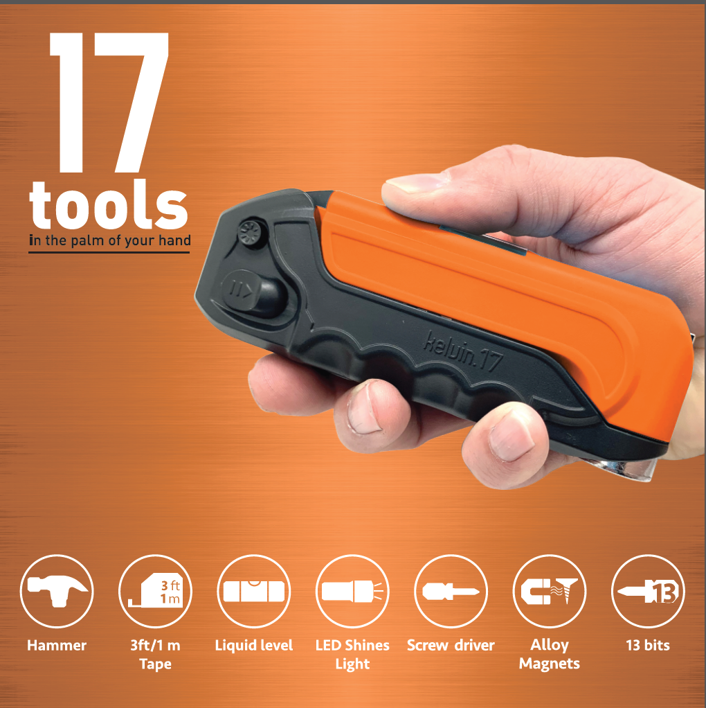 The Kelvin 17 Everyday Multi-Tool allows you to tackle hundreds of everyday jobs with ease. It features 17 tools in one compact, rugged, stylish design that fits in the palm of your hand. Time to empty your junk drawer and replace that messy toolbox!